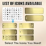 - Let's personalize this high quality brass plate just for you,choose from our selection of fonts and images,create it just the way you want it, in order to fit your project. Mount to picture frames, artwork, plaques, wedding gifts, memorials, trophies, awards, and so much more. This plate is made from high quality brass metal material,it's coated with a baked on enamel finish, then engraved using our diamond drag engraving method. The engraving is lightly cut into the plate surface, then, engraving is darkened using an oxidizer solution. These plates are made for indoor applications only, and it is intended for mounting to stationary objects that will not be moved around, such as frames, trophies, walls, doors, etc. Please be careful to check the engraving information that you send to us, we engrave the plates exactly as the text is typed in the customization areas.Our brass plate is made from high quality brass metal material with surface brushed finished, you can create the contents what you want, including the images from our image library (please refer to the listing photos for image choices).If you don't specify an image, then we will not engrave image on the plate,and the images are usually engraved on both ends of the polished side of the brass plate(Unless you indicate otherwise).This size 3"(Length) x 1"(Width) x 0.04"(Thickness: 1MM) solid brushed brass plate can be laser engraved up to 3 lines of text and maximum 30 characters per line. But maximum 24 characters for the plaque with holes style(Because two holes take up space).2 options of Mounting: 1. The brass plate has a 3M self-adhesive on its back side.2. Two holes will be drilled at both ends of the brass plate, and 2 screws will be included in the package. (Warm Note: If you don't specify the exact mounting type, we will send you the brass plate with a 3M self-adhesive.)In what circumstances would you use this customized brass plate? Yeah I guess you got it! It can be Mounted to frames, walls, doors, picture frames, artwork, plaques, wedding gifts, memorials, trophies, awards, and so on.These brass plates are made for indoor applications only, and they are not suitable for installation outdoors or in other humid conditions.Finally, we would like to inform you warmly that we will engrave the plates exactly as the text is typed in the customization areas, please check the engraving information carefully that you send to us.