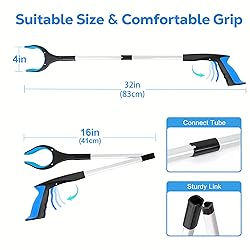 - The 32" Grabber Reacher Tool is a must-have for seniors, heavy-duty workers, and outdoor enthusiasts. With a 360° rotating jaw and magnet, it can easily grab objects from hard-to-reach places, such as trash cans, gutters, and roofs. The lightweight and durable design makes it easy to use and carry, while the adjustable handle provides a comfortable grip for extended use. Whether you're doing home repairs, cleaning gutters, or exploring the great outdoors, this reacher tool is the perfect tool for the job.