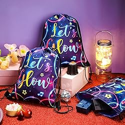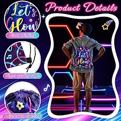 Bulk Package: with one single purchase, you get a pack of 24 let's glow drawstring bags for adults, size of about 12 x 10 inches; This bulk package not only gives you enough quantity for replacements but is also ideal for events, parties, or gifts; You can share the joy of a smart, practical gift with your friends and family throughout the year Pretty Design: the neon glow party gift bags are designed with vibrant colors pattern and glow in dark party themed, which is coordinated with the theme of neon party, also fit well with your other neon party decorations, great for taking photos, gift ideas, and decorating; Your friend will love these neon party decorations Waterproof Material: our adult drawstring bag is made from quality polyester fiber, ensuring its durability and ensuring its stand against daily wear and tear; This material is waterproof, and the polyester fiber allows for easy cleaning and quick drying; Give your belongings the quality protection they deserve with this backpack Suitable Size: the neon drawstring bag, with a substantial size of about 12 x 10 inches/ 30 x 25 cm, provides plenty of space without being bulky; It is designed to accommodate your items like books, gym gear, electronics or travel necessities, making it an ideal choice for various activities and daily needs Warm Tips: our drawstring backpack are packed in boxes; If you receive the old packaging, you can remove the bag creases by ironing or placing heavy objects, thank you for your understanding; Sports drawstring bag staining problem has been improved, please feel free to buy