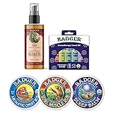 Badger Wellness & Aromatherapy Bundle - Sleep Balm w Lavender & Bergamot, Deep Tissue Massage Oil, Sore Muscle Rub, Aromatic Chest Rub, Aromatherapy Balm Stick Variety Pack - Certified Organic