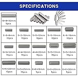 【Versatile Assortment】 This Pulley Key set offers a wide variety of sizes, ranging from 3mm to 12mm, to satisfy different needs. With a mix of 60 pieces, you'll have plenty of options for fastening various equipment.Whether you're a professional or DIY enthusiast, this comprehensive assortment ensures you'll always have the right size at your fingertips. 【High-Quality and Durable】The Pulley Keyway Keys is made of high-quality carbon steel material, with precise craftsmanship, smooth surface, no burrs, corrosion and rust resistance, not easy to break or deform, and durable. 【Convenient Storage and Portability】 Equipped with a plastic box, this Pulley Key set allows for easy organization and storage. The box ensures your parallel keys are in an organized manner, making it simple to locate and retrieve the specific size you need. Additionally, the compact and lightweight design of the box makes it convenient to carry and transport, ideal for professionals on the go. 【Package Includes】 140 pieces in total, 10 pieces each of the following sizes: 3x3x8mm, 3x3x10mm, 3x3x12mm, 3x3x16mm, 4x4x10mm, 4x4x12mm, 4x4x16mm, 4x4x20mm, 5x5x12mm, 5x5x16mm, 5x5x20mm, 5x5x25mm, 5 pieces each of the following sizes: 6x6x 16mm, 6x6x20mm, 6x6x25mm , 6x6x30mm, the quantity is sufficient, the size is rich, to meet the needs of different fields. 【Wide Application】 You can use the round ended feather keys to fasten the equipment and applications, they easily fit into a mating keyway to transfer torque at shafts and hubs, Great fastener to improve efficiency.