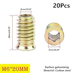 Qrity 20 Pcs Threaded Insert, Hex Drive Threaded Inserts for Wood, Furniture Nuts, Hex Socket Drive M6x20mm, Wood Inserts