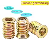 - Qrity Screw-in nuts are made of zinc plated carbon steel, high hardness, wear-resistant and rust-proof, easy to install, with strong torque and adaptability. Features: 1. These Threaded Inserts Nuts provide greater friction for easier rotation and tighter bolting, with greater load carrying capacity and less tendency to loosen when attaching fasteners. 2. Made of high quality carbon steel with high strength and toughness, it is more better able to withstand external shocks and vibrations than ordinary threads. 3.This kind of nut adopts internal and external thread design, even pitch, clear thread, its force is uniform, higher tightening strength, widely used in machinery industry, auto parts industry, electronics industry, construction industry and other fields. Specification: Material: Zinc plated carbon steel Size: M6x20mm Package include: 20x Qrity Insert Nuts