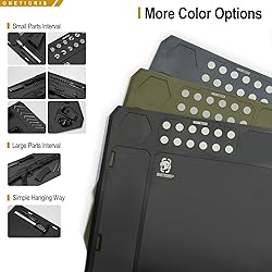 Large Space: the gunsmith mat has been divided into 6 main parts (1 magnectic part included) to easily cleaning your kits, enables your guns to be well disassembled and assembled (Main Part: 39.8"*12.8"; Full size: 48.0"*16.0") Magnets Embedded: your guns could be quickly disassembled and assembled with 12 magnet-embedded spots on the cleaning mat instead of glued-on magnets and meanwhile keep it dampproof Easy Cleaning: The rubberized surface of the rifle cleaning mat prevents gear scratches, and dirt can be easily wiped away with a cloth or napkin. Its non-slip bottom ensures stability during use Protective Workbench:This workbench mat with organizer parts tray perfect for cleaning your guns with small parts,effectively protecting your tabletop from scratches and spills Easy Storage: Our cleaning mat has 2 hanging holes and 2 removable tapes allowing you to hang the mat on the wall or store it neatly rolled up in its included package