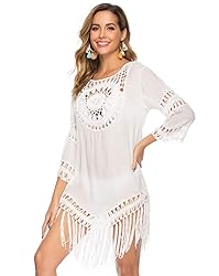 Jinjin.QC Women’s Bathing Suit Cover Up for Beach Pool Swimwear Crochet Dress With Tassel