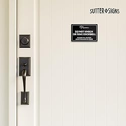Sutter Signs Please Do Not Knock or Ring Doorbell Sign | 4x6" Durable ABS Plastic | Do Not Knock Adhesive Sign for Front Door, Home Office, Napping Baby, and Remote Work - Professional Do Not Disturb Sign