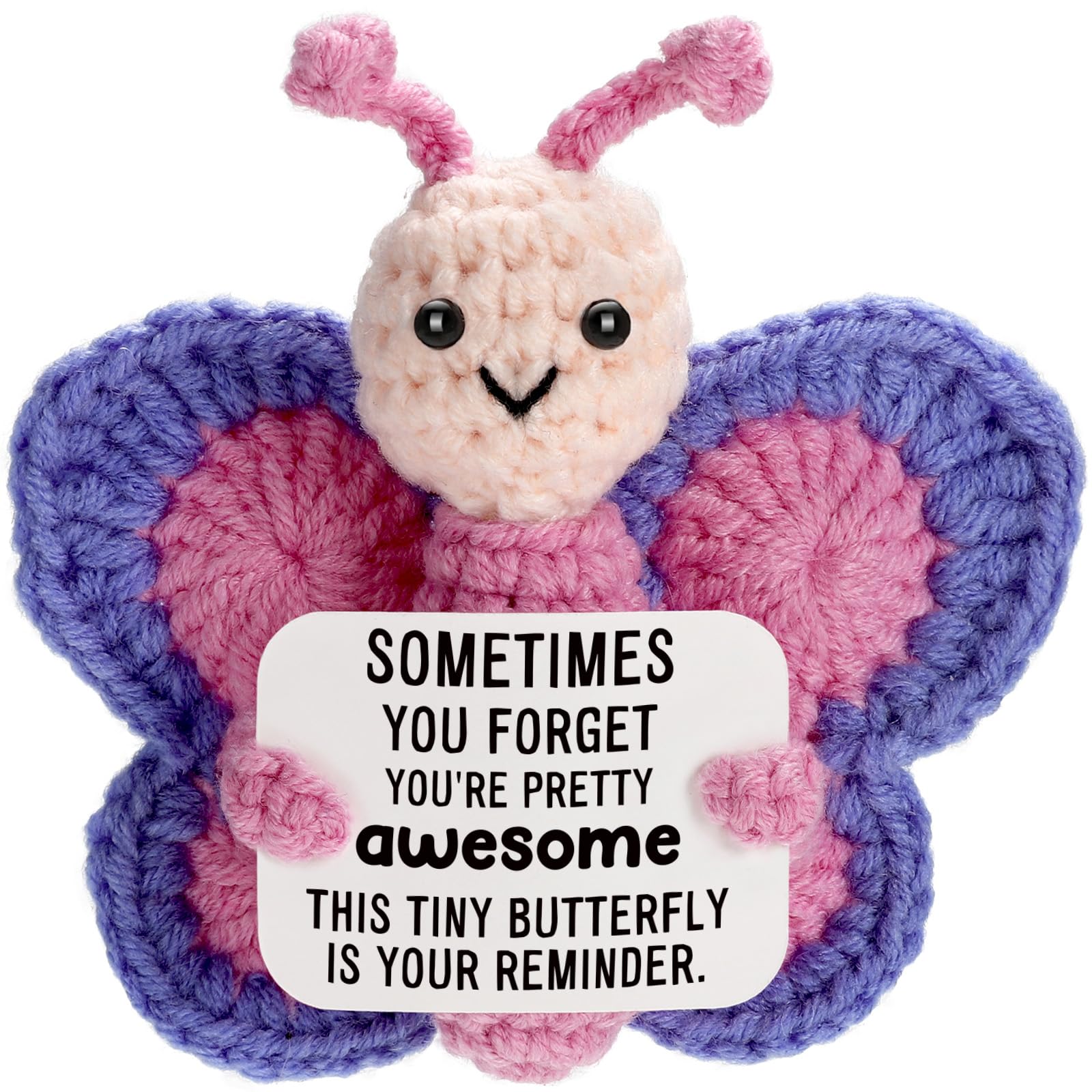 Handmade Product: This product is full of handmade, crocheted with care and love. Includes: Lovely crocheted ornament and it holding a card written with encouraging words, also the card is safe glued, no need to worry about the card falling off. Material: Our funny crochet item is made of high-quality woolen yarn by crocheting, skin-friendly and soft. Features: Every pack includes a stand base, can steadily stand on the desk or table. Widely Use: Funny ornament is perfect as a decor for desktop, living room, bedroom, car, adding a lovely and positive atmosphere. It can also be used as a pendant, hanging on a bag or keychain.