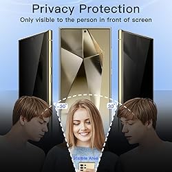 [Warm Tips] Please re-add fingerprint AFTER applying the film and go to Settings of your device to activate the Touch Sensitivity for a better unlock experience. Exclusively for Samsung Galaxy S24 Ultra 5G 6.8-inch [Effortless Installation] Comes with an easy installation tool. Allow you to align perfectly and install the screen protector quickly without leaving any air bubbles [Anti-Spy] Upgraded premium material keeps the screen only visible to persons directly in front of the screen. Protect your privacy from peeping eyes while not compromising the definition of screen images [Premium Tempered Glass] Highly protect the screen against scratches and abrasions up to 9H (harder than a knife). Oleophobic coating keeps the screen free from fingerprints and oil [Case-Friendly] There is enough edge space around the borders for your case to wrap around the edges of your mobile. Compatible with most phone cases