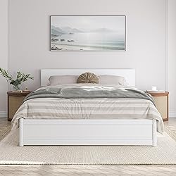 MODERN ADJUSTABLE HEADBOARD: Our low solid wood panel headboard offers a sleek and contemporary backdrop for your bedroom that adjusts up or down to accommodate a range of mattress heights EXQUISITE HARDWOOD PANEL FOOTBOARD: Elevate the aesthetics of your bedroom while discreetly concealing your under-bed space with this contemporary hardwood panel footboard UNDER-BED STORAGE DRAWERS: Enjoy remarkable functionality and keep organized with the included set of two under-bed storage drawers; can be placed on either side of the frame for easy access; DRAWER DIMENSIONS: 20.55 in (L) x 39.76 in (W) x 8.07 in (H) BOX SPRING NOT REQUIRED: Reliable and robust wood slats are designed to support and extend the life of your mattress without the need for a box spring or foundation; RECOMMENDED MATTRESS HEIGHT: 8-12 inches USB CHARGING STATION: Includes Surface Mount Turbo Charger, 6-foot cord, ETL listed, 18GA wire, 2 USB Ports .5V/3.5A; WEIGHT CAPACITY: 800 lbs; ASSEMBLED DIMENSIONS: 82.76 in (L) x 64.57 in (W) x 33.46 in (H)