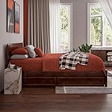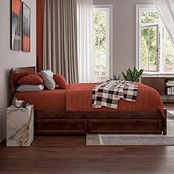 MODERN ADJUSTABLE HEADBOARD: Our low solid wood panel headboard offers a sleek and contemporary backdrop for your bedroom that adjusts up or down to accommodate a range of mattress heights EXQUISITE HARDWOOD PANEL FOOTBOARD: Elevate the aesthetics of your bedroom while discreetly concealing your under-bed space with this contemporary hardwood panel footboard UNDER-BED STORAGE DRAWERS: Enjoy remarkable functionality and keep organized with the included set of two under-bed storage drawers; can be placed on either side of the frame for easy access; DRAWER DIMENSIONS: 20.55 in (L) x 36.93 in (W) x 8.07 in (H) BOX SPRING NOT REQUIRED: Reliable and robust wood slats are designed to support and extend the life of your mattress without the need for a box spring or foundation; RECOMMENDED MATTRESS HEIGHT: 8-12 inches USB CHARGING STATION: Includes Surface Mount Turbo Charger, 6-foot cord, ETL listed, 18GA wire, 2 USB Ports .5V/3.5A; WEIGHT CAPACITY: 800 lbs; ASSEMBLED DIMENSIONS: 77.87 in (L) x 57.8 in (W) x 33.46 in (H)
