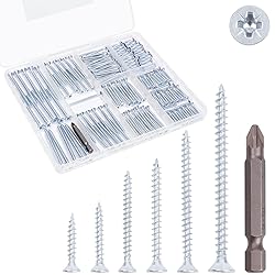 VERSATILE SIZE RANGE FOR ANY PROJECT: Our Wood Screws Assortment Kit features a range of sizes to suit various tasks. From the compact 3/4” screws for delicate woodworking to the sturdy 2-1/2” screws for heavy-duty construction, each size, including 3/4”, 1”, 1-1/4”, 1-1/2”, 2”, and 2-1/2”, is carefully chosen to ensure versatility and adaptability. With this assortment, you'll always have the perfect size for any woodworking or drywall project. DURABLE AND CORROSION-RESISTANT: Crafted from carbon steel with a galvanized surface, our assorted screws set guarantees durability and long-lasting performance. Whether you're working on hardwood or drywall, these screws are designed to withstand the test of time, providing reliable strength and corrosion resistance in any environment. EFFICIENT AND CONVENIENT: Say goodbye to rummaging through cluttered toolboxes with our meticulously organized wood screws assortment kit. Each screw is neatly housed in a transparent plastic box with multiple compartments, ensuring easy access and efficient storage. From 3/4” to 2-1/2” sizes, including assorted screws, this kit has everything you need for seamless project completion. PRECISION ENGINEERING FOR OPTIMAL PERFORMANCE: Engineered with precision and attention to detail, our screws feature a Philips flat head design to minimize bit slippage and ensure a secure grip during installation. Additionally, the advanced hardening process prevents bending and enhances the overall strength of the screws, making them suitable for a wide range of applications. ENHANCED PROJECT EFFICIENCY: Experience a productivity boost with our wood screws assortment kit. The sharp threading design facilitates smooth insertion and tight fastening, allowing you to tackle projects with ease and efficiency. Whether you're a seasoned professional or a weekend warrior, our screw assortment kit is the ultimate companion for all your woodworking and drywall needs.