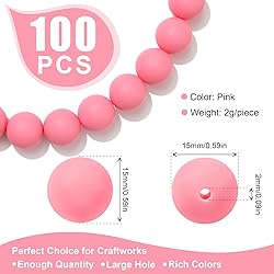 100Pcs 15mm Silicone Beads for Keychain Making Bulk for Pens and Round Silicone Focal Beads for Bracelet Making (Pink)