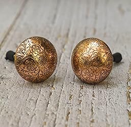 - Add a touch of life to your old units with these beautiful shiny copper hammered design doorknobs. Made of pure copper metal, they are both durable and stylish. The reflective properties of these knobs beautifully reflect light into the room, and they sit on a bright copper base that is flush with the surface of your wardrobe or drawer, creating a seamless and neat finish. These knobs are perfect for decorating, and they are an ideal way to transform your home decor subtly but effectively. They are made from high-quality materials and come with durable fittings, making them suitable for all sorts of applications. Whether you want to use them on your wardrobe, chest of drawers, cabinet doors, bedroom, kitchen, bathroom furniture, dressers, or cupboards, these knobs are the perfect fit. The simple and elegant design of these hammered copper knobs adds a timeless look to your furniture, giving it just the right amount of luxury. Hammered copper is a classic option for those looking for timeless elegance, and these knobs are the quickest and easiest way to refresh your furniture and turn it into a statement piece.