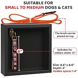 - Pet Shadow Box Memorial Gift Collar Picture Frame Keepsake Dog Sculptures Decor Rainbow Bridge Bottle for Pet Fur Hair Teeth Loss of Dog Cat Idea Sympathy Gifts for Pet Lover Specifications: + Shape: Square + Sizes: 8.6''x8.6 + Thickness: 2'' + INTERIOR DEPTH: 1.4'' Material: Wood and Acrylic Beautiful patterns, durable construction, smooth edges, and lightweight design Package Included: + 1 Shadow box comes with 1 Collar holder + 1 Acrylic Cover + 1 Paw Print Kit + 1 Fur Jar + Dog and Cat Sculptures + 1 Quote Ornament + 2 Handwritten Tags + 1 Pen + 1 Giftable Box Features: This pet keepsake is a heartfelt way for pet owners to cherish their beloved furry friends. This keepsake box symbolizes love and loyalty, allowing pet lovers to hold onto a piece of their pet even after they have passed. Crafted from high-quality wood and durable materials, this keepsake is designed to last a lifetime. The elegant design adds a touch of sophistication, making it a beautiful addition to any home decor. This pet keepsake makes a thoughtful and sentimental gift for any animal lover. It is perfect for occasions such as pet memorials, birthdays, or holidays, allowing friends and family to express love. Important Notes: Please allow slight errors in size due to manual measurement The color may appear slightly different due to variations in lighting.