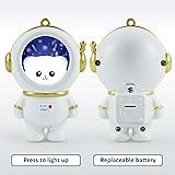 【Light Up Astronaut Keychain】 This kawaii cute astronaut-shaped keychain ring is designed with light and a small bell, which will coming out from the helmet. There is a switch on the body of the astronaut. Making the astronaut keychain a delightful accessory for enthusiasts and casual admirers alike 【Snap Hook Closure】The keychain has a robust snap hook and a key ring to securely hold multiple keys which can perfectly match your backpack, wallet, car keys, home key chain and various places 【Replaceable Battery】Astronaut cute key chain is battery powered, powered by replaceable 3 1.5-volt electronic batteries. This design choice emphasizes sustainability, as it allows the keychain to be reused rather than discarded when the batteries deplete 【Light for Carry】 It is made of lightweight plastic could withstand daily wear and tear, matte surface. It is not only compact and easy to carry around, but resistant to falling and wear. Exquisite and cute key chain takes up less space, and makes your keys not easy to lose 【Best & Unique Gift】The stylish astronaut keychain makes your key special, it is a best gift for women men girls boys couple. Also perfect for fans of cartoon astronauts, space lovers, and NASA fans. Come with a gift box