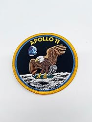 Business Information: Owned and operated by a US Naval Aviator Product Type: Embroidered patch with hook and loop backing, measuring 4 inches in diameter Historical Significance: Commemorates the Apollo 11 mission, the first human landing on the Moon in July 1969 Design Features: Authentic reproduction of the original Apollo 11 mission patch worn by the crew Mission Details: Represents the historic achievement of astronauts Neil Armstrong, Buzz Aldrin, and Michael Collins