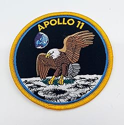 - Apollo 11 Patch Space fans and collectors! Enjoy the beautifully embroidered Apollo 11 Patch. It is the perfect tribute to this crew and their mission! 4 inches Embroidered/Hook and Loop US Naval Aviator Owned Business Reproduction By Neil Armstrong - http://www.hq.nasa.gov/alsj/a11/AS11-40-5903HR.jpghttp://www.archive.org/details/AS11-40-5903 (TIFF image)NASA Image and Video Library, Public Domain, Apollo 11 (July 16-24, 1969) was the American spaceflight that first landed humans on the Moon. Commander Neil Armstrong and Lunar Module Pilot Buzz Aldrin landed the Apollo Lunar Module Eagle on July 20, 1969, at 20:17 UTC, and Armstrong became the first person to step onto the Moon's surface six hours and 39 minutes later, on July 21 at 02:56 UTC. Aldrin joined him 19 minutes later, and they spent about two and a quarter hours together exploring the site they had named Tranquility Base upon landing. Armstrong and Aldrin collected 47.5 pounds (21.5 kg) of lunar material to bring back to Earth as pilot Michael Collins flew the Command Module Columbia in lunar orbit, and were on the Moon's surface for 21 hours, 36 minutes before lifting off to rejoin Columbia. Apollo 11 was launched by a Saturn V rocket from Kennedy Space Center on Merritt Island, Florida, on July 16 at 13:32 UTC, and it was the fifth crewed mission of NASA's Apollo program. The Apollo spacecraft had three parts: a command module (CM) with a cabin for the three astronauts, the only part that returned to Earth; a service module (SM), which supported the command module with propulsion, electrical power, oxygen, and water; and a lunar module (LM) that had two stages—a descent stage for landing on the Moon and an ascent stage to place the astronauts back into lunar orbit. After being sent to the Moon by the Saturn V's third stage, the astronauts separated the spacecraft from it and traveled for three days until they entered lunar orbit. Armstrong and Aldrin then