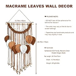 【High-Quality Material】- Our macrame wall art is handcrafted cotton cords, ensuring a clean and soft texture. 10 Macrame Leaf Wall Hanging with wood poles and wood beads as decoration, highly durable, sturdy and stable. This bohemian home decor is safe for your family 【Elegant Leaf Wall Decor】 - Elevate your home's ambiance with our Bohemian Macrame Wall decor, Simple and elegant tassel tapestry suitable for various decoration styles. This boho aesthetic wall hanging macrame will fill a blank wall, adding texture and comfort to your house. Erfect for those who appreciate earthy, boho aesthetics 【Boho Home Decor】- This woven tapestry adding a bohemian touch to your living room, our Macrame Wall Art effortlessly adapts to various decorative themes, including rustic, Zen, and minimalist interiors. decorations for hanging over the head of a bed, over a couch, fireplace mantel or desk, or near a window, in the hallway, living room, bedroom, office to beautify your living or work space. Also great decor for Bridal Shower, Boho Wedding, Baby Shower, Engagement Party, etc 【Perfect Gift Idea】-More than just decorative items beautiful and practical gift for your family or friends who loves wall display and bohemian home decoration. Great gifts for housewarming, birthday, wedding, holiday, new home gift and more 【Excellent Customer Service】-Artilady, we are dedicated to providing chic room decor like our dream catcher. If you have any questions or concerns before or after your purchase, please don't hesitate to reach out to us. We're here to ensure your satisfaction Please Note : There is a film on the back of each leaf to keep the leaf shape and vein, so it is not recommended to tear it off The leaves may be curly during transport, gently comb the tassels and hang it up for a few days and let it spread naturally, you will get a more beautiful wall hanging