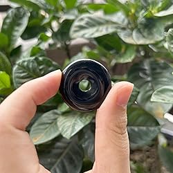 Bacatgem 2 Pcs Black Obsidian Polished Crystal Amulet Peace Circle Donut Stone Beads Supplies,Round Large Hole 7mm Lucky Coin Amulet Peace Circle Healing Crystal