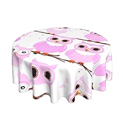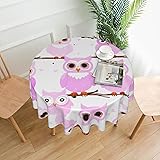 - Cute Owl Textured Tablecloth Round 60 Inch Waterproof Spill-Proof Wipeable Table Cloth Wrinkle Free Circle Dining Cover