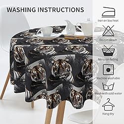 - Tiger At Rest Textured Tablecloth Round 60 Inch Waterproof Spill-Proof Wipeable Table Cloth Wrinkle Free Circle Dining Cover