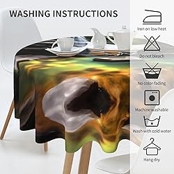 Waterfall Views Material Description :Made Of High Quality 100% Polyester With A Soft And Smooth Surface Giving An Exquisite Feel When Touched Fabric That Resists Wrinkling For An Always Crisp Polished Look Waterfall Views 60" Round Tablecloth Fits A Table That Seats 4-6 People Or Layer On Larger Table As Well Better Match Your Table And Give You A Delightful Dining Experience High Quality & Durable : Made Of 100% Spun Polyester, Sturdy Sewing, Soft And Durable, Protecting Your Tables And Furniture From Scratches, Stains And Sun Rays Versatile Use : This Tablecloth Is Suitable For Both Indoor And Outdoor Use, Good For A Causal Dinner, Picnic, Camping And Parties. Easy Care & Reliable Durability: This Cloths Are Conveniently Machine Washable And Safe To Dry, Retaining Their Color And Shape After Multiple Uses And Washes, Making Them The
