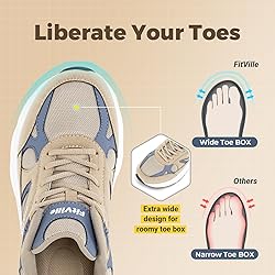 Wide Toe Box & High Instep Design: FitVille Rebound NEO V1 walking shoes feature a spacious toe box, providing ample room for your toes to spread comfortably and reducing pressure on sensitive areas. All-New PropelCore Sole: FitVille's upgraded 4 in 1 Rebound Technology midsole delivers increased cushioning and supporting for every step thus relief pain from plantar fasciitis or heel pain. Upgraded Rubber Outsole: The FitVille's innovative outsole features a 30% increase in rubber content, delivering superior slip resistance and enhanced traction on various surfaces. Supportive Ortholite Insole: The removable Ortholite insole with a supportive heel cup and neutral arch support, designed for enhanced support and comfort with every stride. Breathable & Flexible: The wear-resistant suede and mesh upper offer unparalleled durability while ensuring maximum breathability for all-day comfort.