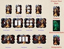 Double Gang Light Switch CUSTOMIZE YOUR STYLE – All designs are available in classic, holographic, or glow-in the dark PRECISION DESIGN - Laser cut acrylic plate includes screws and matching screw cap cover stickers EASY TO CLEAN – Just use a soft towel and any non-abrasive cleaner to clean your wall plate covers SIMPLE TO INSTALL - Exclusive flush to the wall soft foam contoured base won’t scratch or damage your walls