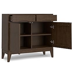 SIMPLIHOME Harper Storage Cabinet - 40 inch Wide Solid Wood Medium Storage Cabinet in Walnut Brown, Mid-Century Modern Cupboard for Entryway or Dining Room with Drawers, Tapered Legs, and Shelves
