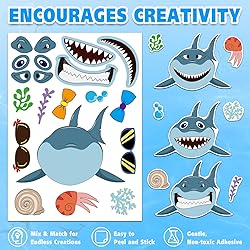 Ocean-themed Activities Value Pack: 42 Sheets with 14 Unique Ocean Creatures Designs (3 Sheets Each). Includes Dolphin, Shark, Seal, Turtle, Octopus, Whale, Clownfish, Jellyfish, Seahorse, Starfish, Crab, Pufferfish, Squid, and Stingray. Mix and Match Fun: Each sheet features different eyes, mouths, and accessories to create endless silly or cute faces, promoting kids' creativity and fine motor skills. Perfect Size for Little Hands: Each sheet measures 8.3x6 inches, making it easy for children to handle and create. High-Quality Vinyl: Made from durable, waterproof vinyl with a glossy finish, ensuring long-lasting use and vibrant colors. Great for Various Occasions: Ideal for parties, classroom activities, rewards, and creative playtime, providing hours of entertainment.