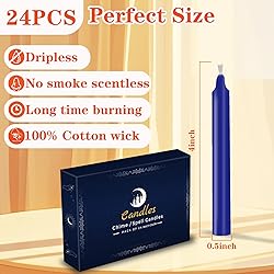 Multi-purpose Colorful Candles: Our wind chime candles can be used as wind chime holders, witchcraft supplies, witchcraft candles, pagan altar candles, magic, spells, rituals, memorials, parties, prayers, Hanukkah, home decorations, birthdays, and any other special occasions in your life. MEDITATION CANDLES: Our signature colored candles are designed to create a soothing, meditative atmosphere that helps promote calmness and focus; perfect for rituals and spells. Unscented Candles: Made from natural high-quality paraffin wax and pure cotton candle wicks, these dripless, smokeless taper candles burn cleanly and Unscented. Burn Time: The spell/chime candles set includes 24 candles in 12 different colors, odorless candles that are 4 inches tall and approximately 0.45 inches wide, suitable for most candle holders, ensuring up to 2 hours of continuous burning. Magic Candle Gifts: Colorful magic candles are specifically designed to create a tranquil atmosphere, promote inner peace, and enhance focus. They are an ideal choice for rituals and spells. Placing them on your personal altar or giving them as gifts to those who appreciate spiritual decorations will bring them a wonderful experience.
