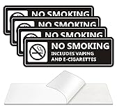 - NO SMOKING INCLUDES VAPING AND E-CIGARETTES SIGN What is the difference in our No Smoking No Vaping Sign ? → 1.【Strong Self Adhesive, Never Falls Off】 Comes with a strong self adhesive backing. Super easy to install to most smooth and flat surfaces. → 2.【Durable Thick Aluminum No Smoking Sign】 Made from 40Mil (1MM) thick solid aluminum. Waterproof, rust free, and not easy to bend or scratch. → 3.【Value Pack of 4 Metal Signs】 One order conveniently provides you with 4 sturdy metal signs, offering versatility for placement in various locations. → 4.【Highly Visible & Simple Design】 Bright color with bold letters makes the message stand out very well and people will never miss it. → 5.【Weather Resistant & Never Fade】 UV printed lettering will not fade even in extreme temperatures. Metal material ensures it will last for many years. Item Specifications: → Color: Brushed Nickel/ Black or Black/White → Waterproof: Yes → Thickness: 40Mil → UV Protected: Yes → Material: Aluminum → Fade Resistant: Yes → Indoor /Outdoor Use: Yes → Item Weight: 0.8 Ounces → Material: Durable Aluminum → Style: Simple, Modern, Bright → Size: 9.0 x 3.0 inches or 7.0 x 2.0 inches → Quantity: 4 No Smoking Signs Package Includes: → 4 x No Smoking Sign How to install your new No Smoking Sign ? ►Steps: Clean → Peel → Stick → Press → 1. Choose an appropriate height for the No Smoking Sign. → 2. Thoroughly clean the substrate to remove dust, grease, or silicone before applying. → 3. Tear off the self-adhesive backing to expose the glue. Do not touch the adhesive side. → 4. Apply the sign to the target surface and press firmly with your hand for about ten seconds!