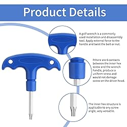 - Description: Product name: 1pcs golf wrench tool color: blue Material: plastic + stainless steel Product size: 85.5*74.1mmpacking list: 1pcs golf torque wrench