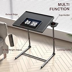 【Multifunctional TV Tray Table】This TV tray is practical and ideal for everyday home use. Place it at the edge of your sofa or bed as a TV dinner tray, couch table, folding table, snack tray, and more. It also can be used as children's drawing board and children's study table 【Sturdiness & Stability】Our TV tray table is made of tough plastic and high-strength steel pipe, shows excellent sturdiness and stability and can support 40 lbs of weight. With leg stabilizers for extra stability, not easy to fall down, and removable cross rod for increasing sturdiness, give you better balance and great support 【Adjustable Height & Angles】The TV tray can be adjusted from 20.8" to 28" in height, features 3 tilt positions to keep the tray horizontal or angle it up and down.Whatever kids, adults or the old all can easily find the most comfortable angle based on your position 【Convenient】The tray measures 20.5''×15.8''× 28'', features a 3" cup holder for standard cup sizes. No tools needed to put this foldable tv dinner tray together, set it up in less than 5 minutes 【Save Space】After removing the bottom stabilizing rod can fold the TV tray flat and store it under a bed or sofa, release your space
