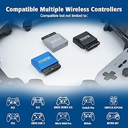 【Widely Compatible】Suitable for PS2/PS1/PS One game console, compatible with PS3/PS4/PS5, Xbox One S, Xbox Series X/S, Wii/Wii U Pro, Switch Pro, Switch Joycon, 8bit-do, Retro-Bit wireless controller, etc.(NOTE: only official PS3/ PS4 controllers are supported) 【Stable Connection】Zero latency, support both BT Classic and BT Low Energy (BLE). The key value of the buttons can be configured through the web bluetooth port of the Google Chrome. 【Crucial Tip】Keep your adapter updated by holding the PAIR button while connecting it to a PC via USB. If unrecognized, install the CH340 driver. Features a backup micro-USB port for external power if the console's controller port provides insufficient voltage. 【Note】This adapter can only be connected to one wireless controller at a time. Can NOT support the games Call of Duty 2 and Duty 3 for now and does NOT compatible with 2.4g wireless controllers(Bluetooth only). 【Note】The 8bit-do m30 controller is in joystick mode by default. Please press and hold the "Up" + "Select" keys on the controller for about 5 seconds to switch it to D-pad mode to solve the button non-working problem.