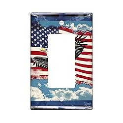 - American Flag Light Switch Cover Plate Sky Bald Eagle Cool Bird Patriotic Victorian Blue Red White Polycarbonate (PC) Decoration Kitchen Room Wall Electrical Covers Screws Included Single Rocker