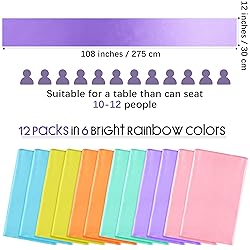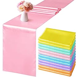 Ample Quantity & Rainbow Color: includes 12 satin table runners, offering 6 different colors, including light red, light orange, light yellow, light green, light blue, light purple, to meet your decorative needs; the pastel rainbow color adds an elegant touch to your table setting that guests are bound to appreciate, providing a sophisticated and welcoming ambience that will be a hit with your guests Size & DIY Friendly: measuring approx.12 x 108 inches/30 x 275 cm, these table runners are versatile enough to cover both rectangular and circular tables and can be joined together for longer tables; get creative by tying them into a bow or use them as chic chair cover decorations, making them a stunning addition to your sage-themed celebrations or for adding a special touch to any chair decorations Seamless One-piece Design: crafted with exquisite workmanship, these pastel rainbow satin table runners feature a smooth, wrinkle-free surface and refined edges; the seamless design elevates your decor, providing the great foundation for an inviting and stylish atmosphere at your gatherings Premium Fabric: our pastel rainbow table runners are meticulously crafted from a fine, richly textured fabric that embodies elegance with its smooth appearance and natural draping qualities; designed to withstand fading and shrinking, they offer longevity and can be reused for multiple events; their superior quality enhances your gatherings, making each party or wedding notably attractive and memorable Easy Care Instructions: to refresh the table runner, simply spray it with water until damp; lay it flat on an ironing board, cover with a thin towel, and use an iron on the lowest heat setting to gently smooth out the most stubborn wrinkles; you can effortlessly maintain their elegance and remain a beautiful component of your event decor for years to come