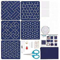 - Features: Over the past few years, DIY handmade decorations have become an increasingly popular craft that is simple, thoughtful, easy to learn, and also brings great satisfaction and fun. Are you hesitant to try a DIY kit because you are afraid of the high difficulty? If you are still hesitating, come and try our Sashiko kit! Our DIY Sashiko Coaster kit with Japanese Traditional Patterns is great for beginner, it includes clear and easy to understand instructions, step by step tutorials to teach you how to make your own crafts. Bringing you beautiful, high quality, easy to follow projects and crafts kits that anyone can make. The sense of accomplishment is unparalleled! Package Include: 2 x navy blue cotton(50x50cm) 5 x square PET templates (5 styles/14x14cm) 5 x Non-Woven Fabric(15x15cm) 4 x embroidery threads 1 x Sewing threads 2 x white water-soluble pens 1 x Thimble 1 x threader 1 x Sewing thread 10 x clips 1 x colored bead needle 1 x pack of embroidery needles 1 x Scissors 1 x ruler 1 x storage box Note: 1. Manually measured, please allow for slight errors in size. 2. Due to different screen displays, there may be slight differences in color. 3. The Sashiko Coaster Kit comes with sharp parts, please use with care. 4. This kit is not a finished product, you need to DIY it yourself.