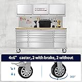 MULTIPLE SIZE STORAGE SPACE: This 72-inch tool cabinet comes with 15 drawers as well as three upper cabinets, totaling ten different sizes of storage space. Meet your storage needs for a variety of tools. TEMPORARY WORKTABLE: The large size tool cabinets come with a 35mm thick oak worktable with SS backboard, which allows you to place all kinds of necessary tools on it and carry out your work easily. HUMANIZED DESIGN: Sturdy slides, aluminum handles, and each drawer comes with non-slip pads. Allowing you to easily control the position of all your items, without pulling and tugging to break the careful regularity you started with. MOBILE STORAGE CABINET: We have this product with two fixable wheels as well as two non-fixable wheels. You can easily pull him to any suitable position with the handles on both sides. This is your mobile workbench. TOOL KEEPER: Who took my tools? I obviously put them here! Our toolbox with key allows you to maintain your tools and also prevents children from taking them out of curiosity and causing unnecessary damage.