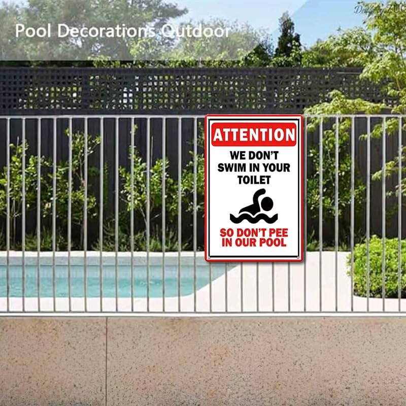 Funny Pool Sign-Don't Pee in Our Pool,Outdoor Pool Decor Pool Rules Signs,Summer Decor,Swimming Accessories Warning Sign for Pool,Backyard Swimming Signs,12x8 Inches