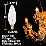 NETEHA 12 Pack Candelabra Torpedo 25W E12 Base 120V Decorative Vintage Light Bulbs, 2700K Warm White Dimmable Edison Candle Bulbs for Chandeliers, Ceiling Fan Lights and Pendants