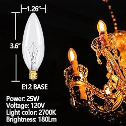 1.These vintage bulbs operate at 120 volts and 25watts and are compatible with E12 base fixtures. They can provide super bright illumination and 2700k warm white light, perfect for decorating your room. 2.These bulbs are dimmable, if you have a dimmer, you can adjust the brightness according to your needs. Meet different lighting needs and get the best lighting effect conveniently. 3.They can provide comfortable light and excellent color rendering, adding a romantic vintage atmosphere to your space. 4.Perfect for chandeliers, ceiling fixtures, portable devices, dressers, wall sconces and some special salt lamps, provide clean and beautiful light to any fixture, enhance the surroundings of your home, office, dining room, living room and more. 5.These light bulbs have a lifespan of up to 2000 hours, which means you don't have to replace them as often.