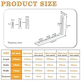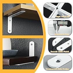 【Premium Quality Material】The heavy duty shelf brackets constructed of hi-q stainless steel, these L shelf brackets material features high hardness, corrosion and rust resistance, strong and durable properties ensure long service life. 【Nice White Finish】The white brackets for shelves are finished by high temperature matte white spray craft, pure and beautiful surface, stylish and beautiful look, not easy to rust、oxidation and paint off. 【Compact But Practical Corner Brace】Small white shelf brackets but has a big use, invisibly supports floating shelves brackets, can make the home decoration more simple, clean, and stylish, applicable to all kinds of wooden board acrylic plate shelves to make the house more beautiful. 【Thickened Material】Reinforced shelving brackets hold heavy decor/books securely. Thicker metal shelf brackets prevents sagging – 3x industry average strength, can withstand at least 10 pounds of weight each pair. 【Easy To Install】All the quality mounting hardware is included in the package, making installation l brackets for shelves very simple and efficient.