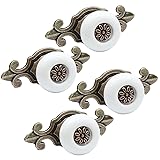 suiwotin 4pcs Ceramic Knobs White Dresser Knobs, Vintage Cabinet Knobs with Antique Bronze Back Plate, Decorative Drawer Knobs Pull Handles for Closet, Cupboard
