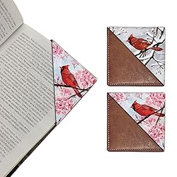 WIRESTER Set of 2 Brown Leather Bookmarks Corner Page Book Marks for Students, Reader, Teachers, Book Lovers - Red Cardinal Bird in Spring, Birds in Winter