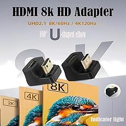 UHD2.1 Support: Our BENACES mini HDMI Extender supports UHD2.1, 8K@60HZ/4K@120HZ resolution, backward compatible with 2K and 1080P resolution@ 144Hz.In addition, our HDMI 2.1 adapte can support ALLM (Automatic Low Latency Mode) and VRR (Variable Refresh Rate), HDR, eARC, HDCP 2.3, Dynamic HDR, Dolby Vision, HD Dolby 7.1, Dolby Atmos, and 3D video. (Note: for 8K performance, cables and devices must support HDMI 2.1 and cable length ≤ 3m) Bi-directional Transmission: mini HDMI male to mini HDMI female adapters with 48Gbps bandwidth transmission, support audio and video bi-directional transmission, and there is no specific requirement for input and output connectors, both are supported. LED indicator will light up during normal operation. HDMI Port Partner: there are 2 styles of u-shaped 180°angle , UP angle mini hdmi converter and Down angle mini hdmi converter. Mini HDMI converter with 0.19 inches U-shape pitch. 180 degree U-shape angle HDMI adapter design can change the interface direction to avoid bending the HDMI cable and reduce the pressure on the HDMI port. Ultra-slim Design: HDMI 2.1 adapter is plug and play, no additional drivers and software required. Ultra-slim size, ultra-compact design, durable gold-plated connectors. Ultra-thin size and 180-degree U-shape angle design makes it easy to wire in tight spaces and avoid cable clutter that can affect aesthetics. Wide application: 8K U-shape mini HDMI extender is used for Portable Camcorder, Graphic Video Card, Laptop, Tablet PC, HDTV, Mini Projector, PC, Laptop, Monitor, HDTV, Fire TV Stick, TV Box, Digital Audio and so on. (Note: Please make sure your device has a Mini HDMI port)