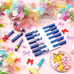 - Features: Boost team morale: The delightful mascot accessories uplift team camaraderie. Our cheer pins set adds an element of excitement and unity, fostering a positive and supportive environment for all members. Suitable for any occasion: Whether it's a cheerleading competition, game day, pep rally, or any other event, our cheer clips are suitable accessories that complement and enhance the overall cheerleading experience. They are sure to make a statement and uplift everyone's mind. Specifications: Main material: woodMain color: blueSize: about 2.87 x 0.39 inches/ 7.3 x 1 cmPackage includes: 60 x Blue wooden clothespins30 x Mini resin ducks30 x Mini bows2 x Self adhesive stickers2 x Pen1 x GlueNotes: Manual measurement, please allow slight errors on size. The color may exist a slight difference due to different screen displays.
