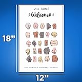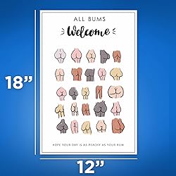 Bliss Monkey Co. All Bums Welcome Poster - Hope Your Day Is As Peachy As Your Bum - Cute Funny Bathroom Wall Art Poster - 12 x 18 Inch Poster - Unframed - Premium 100lb Gloss - Made In USA - BMCP076