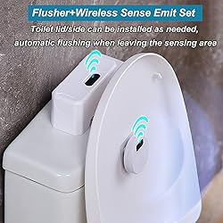 Touchless & Hands-Free Operation: Upgrade your bathroom experience with smart motion sensor technology. The sensitive infrared sensor automatically activates the flush when you wave your hand, reducing contact with common surfaces and keeping your hands cleaner. Ideal for Elderly & Kids: Buttons too hard to push? This automatic flusher is a helpful aid for seniors, people with limited mobility, or children. It makes flushing effortless without requiring finger strength, encouraging independence for little ones. 5-Minute DIY Installation: No plumber or tools required. Simply mount the unit on top of your existing flush button and secure it with the included adhesive. Designed for easy removal without damaging your toilet tank. Includes 3 extension heads for versatile fit. Long-Lasting & Waterproof: Features a high-capacity 1800mAh rechargeable battery that lasts up to 3 months on a single charge. Built with IPX5 waterproof materials to withstand humid bathroom environments. Check Your Toilet Type: Exclusively designed for Top Flush Toilets. NOT compatible with side flush, wall-mounted, or smart toilets. Please verify your toilet mechanism before purchase to ensure compatibility.