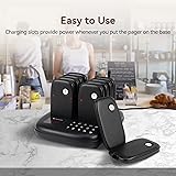 Restaurant Pager Long Distance: the pager calling system is 1000 meters outdoors and 100-300 meters indoors; let your guests move freely and let them rest assured that they will be paged every time 7 Prompt Modes: the restaurant paging system vibration, beep and flash can be combined as needed; meet the needs of different environments Easy to use: factory paired, you can use it immediately; easy to understand instructions, intuitive button display make your pager setting easier 4 keyboard Modes: the keyboard can be adjusted to mute, vibration, beep, buzzer and vibration; you can choose the appropriate keyboard mode according to your needs, so that you will not disturb other customers even in a quiet environment Durable: the buzzer pager is made of ABS material, which is easy to clean; touch keyboard, more sensitive and durable; laser engraving process, character keys are not easy to disappear
